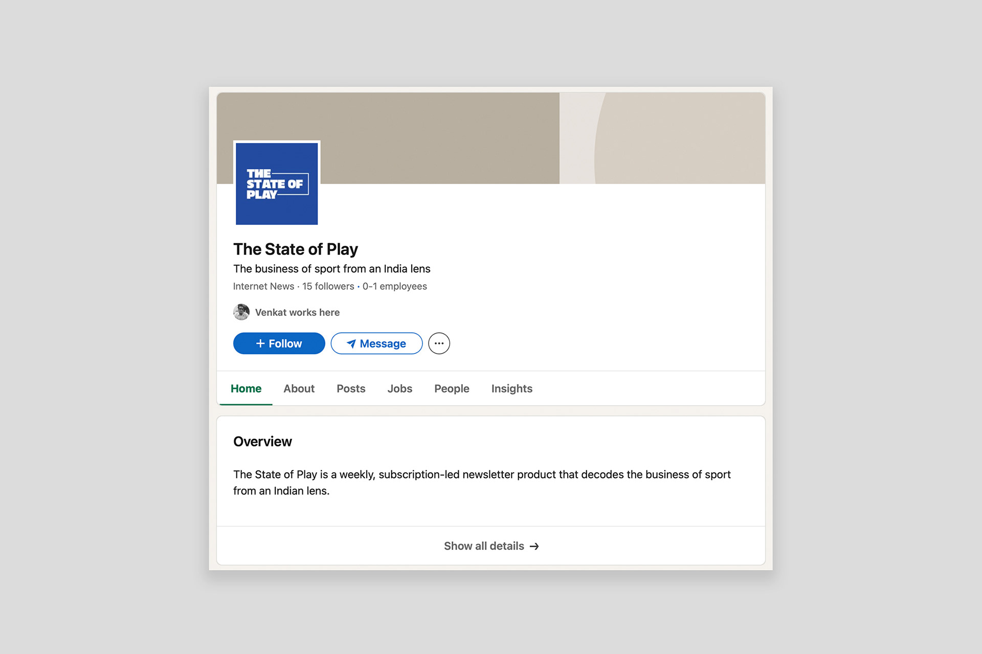 The State of Play is a weekly, subscription-only newsletter that provides in-depth, original insight into the business of sport. The central feature of the identity is the name presented in a bold, assertive typeface, which is ideal for a publication focused on in-depth analysis. The use of frame implies that the content inside takes a focused look at the business of the sport.